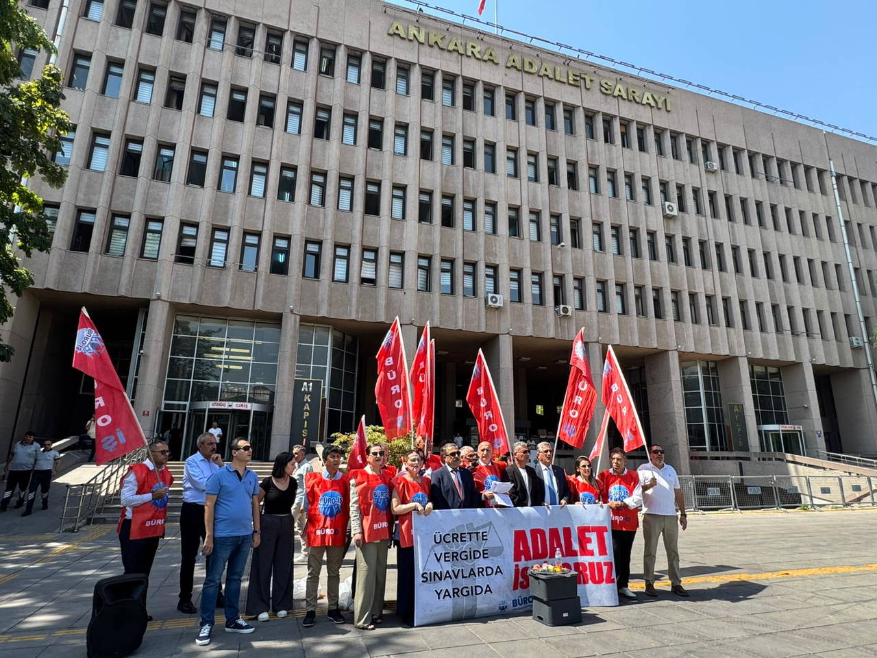 Adli yılın açılış gününde yargı çalışanı emekçilerin sorunlarını Ankara Adliyesi önünden dile getiren Büro-İş Genel Başkanı Alay Hamzaçebi, “Bu sefalet zamları ile bizlerin karnını doyurması imkânsız. Buradan Adalet Bakanına sesleniyoruz. Adalet Bakanlığı hakim ve savcıdan ibaret midir? Adalet Bakanlığının diğer çalışanları üvey evlat mıdır?” ifadelerini kullandı.Adli yılın açılış gününde yargı çalışanı emekçilerin sorunlarını Ankara Adliyesi önünden dile getiren Büro-İş Genel Başkanı Alay Hamzaçebi, “Bu sefalet zamları ile bizlerin karnını doyurması imkânsız. Buradan Adalet Bakanına sesleniyoruz. Adalet Bakanlığı hakim ve savcıdan ibaret midir? Adalet Bakanlığının diğer çalışanları üvey evlat mıdır?” ifadelerini kullandı. Read More
