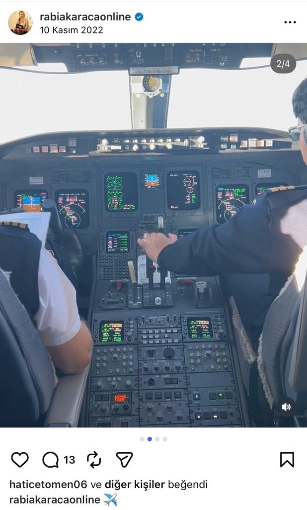 30 Ekim 2022’de Murat Gülibrahimoğlu ve İBB soruşturmasındaki isimlerle özel jete binen Rabia Karaca’nın jette çektirdiği fotoğrafları da 10 gün sonra sosyal medya hesabından paylaştığı görüldü. Fotoğraflarda Rabia Karaca’nın elinde kadehle yolculuk yaparken poz verdiği, kokpitten de fotoğrafları sosyal medya hesabına eklediği görüldü.