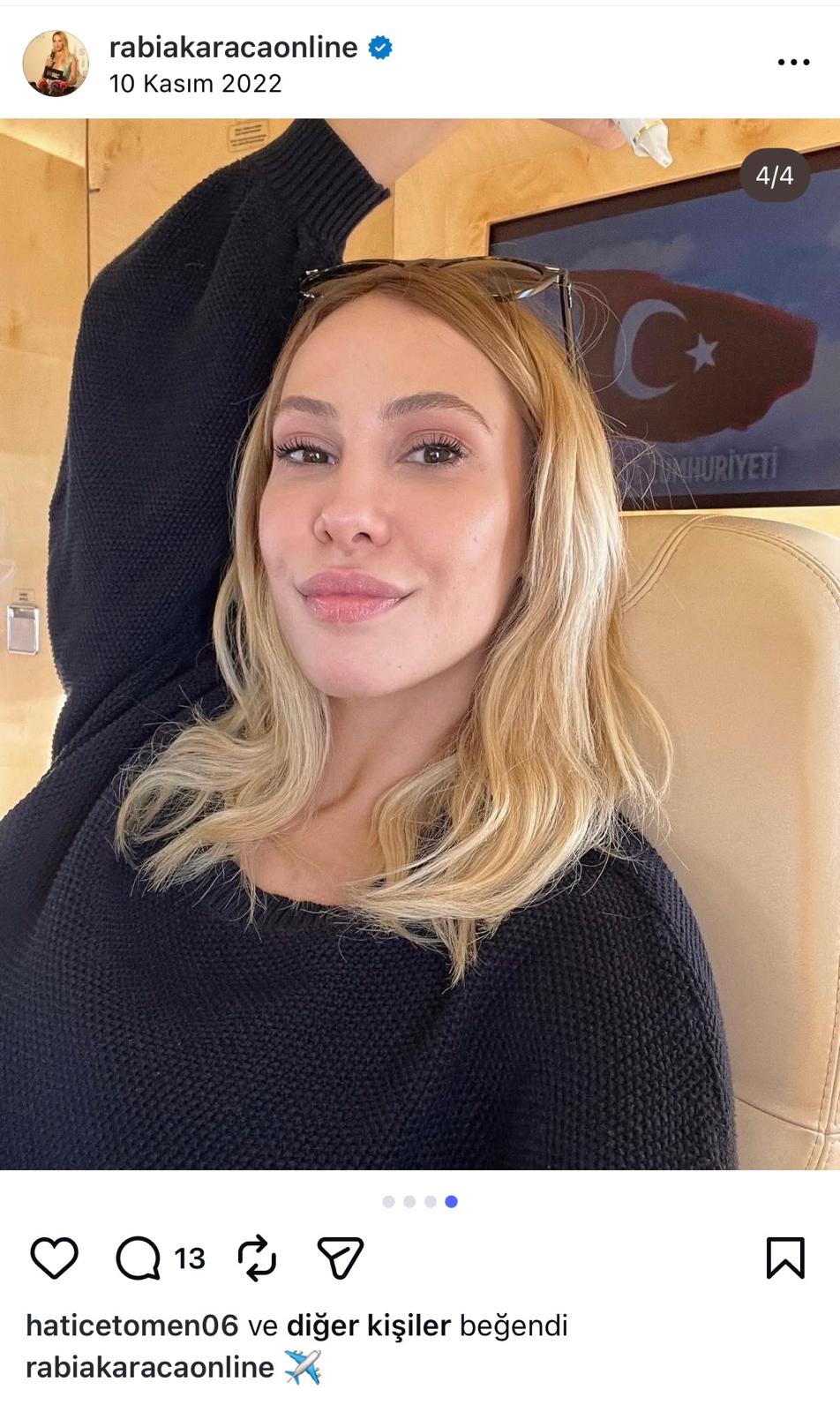30 Ekim 2022’de Murat Gülibrahimoğlu ve İBB soruşturmasındaki isimlerle özel jete binen Rabia Karaca’nın jette çektirdiği fotoğrafları da 10 gün sonra sosyal medya hesabından paylaştığı görüldü. Fotoğraflarda Rabia Karaca’nın elinde kadehle yolculuk yaparken poz verdiği, kokpitten de fotoğrafları sosyal medya hesabına eklediği görüldü.